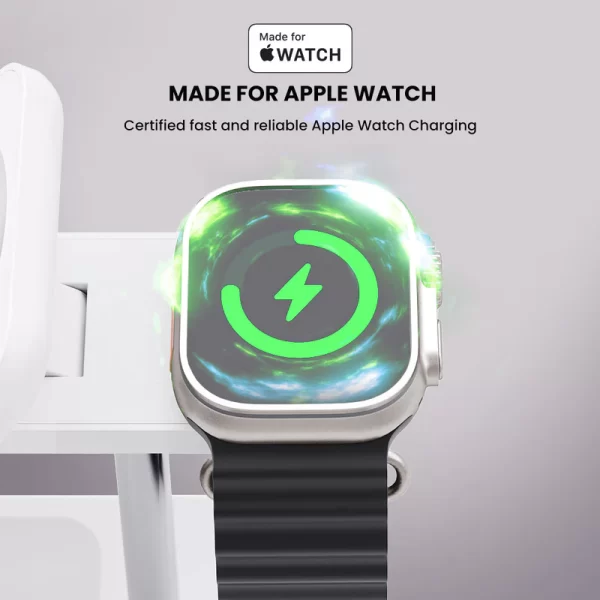 Experience seamless charging with the Trio Ultra: Fast wireless charging, MagSafe and MFi certified, and a space-saving design for your iPhone, Apple Watch, and AirPods.